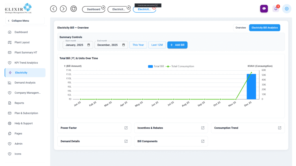 • Sends daily/weekly/monthly reports on energy, cost, PF, MD, ToD, and uptime.