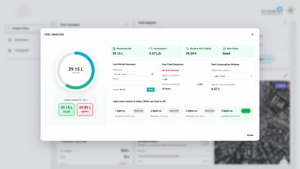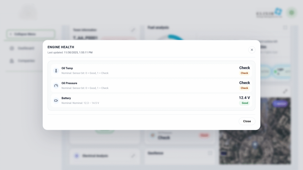 - Calculates service due intervals for oil change, filters, and major overhauls.